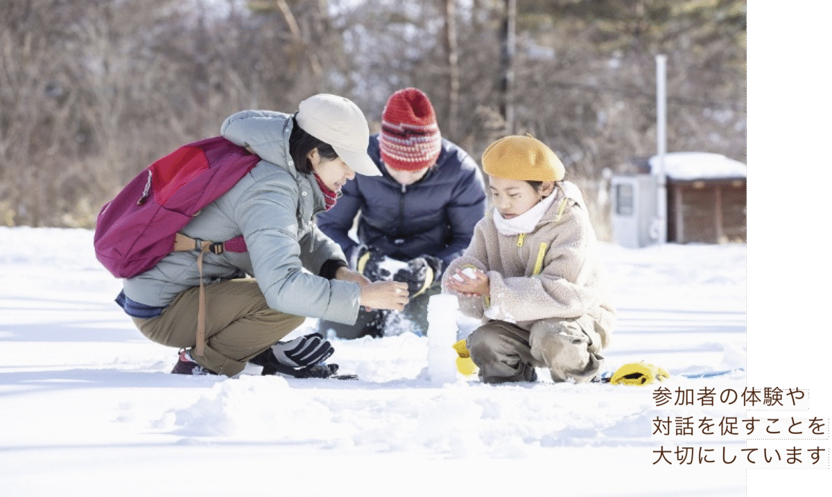 参加者のコミュニケーションの相手はレンジャーだけではありません。家族や友人、ほか他の参加者との対話を通して、発見や感動が広がることもあれば、自然との静かな対話の時間が心に残る場合もあります。レンジャーはこうした対話の場を意識的につくり出しています。